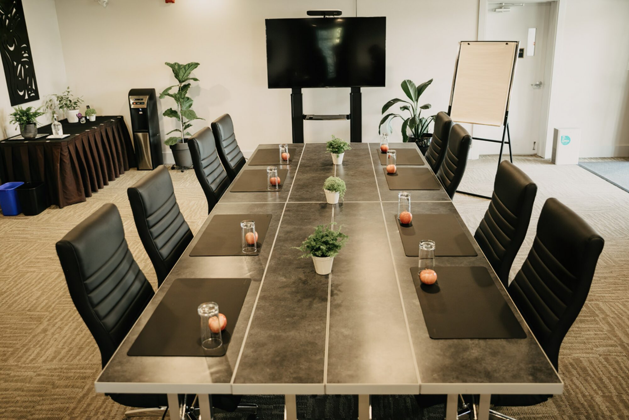 We’ll deliver with our cutting-edge Poly Studio Hybrid Zoom Experience featuring: razor-sharp 4K video, a 65″ flat-screen monitor, boardroom-filling stereo and microphone. Other visual options include a mobile projector, screen and flip charts.